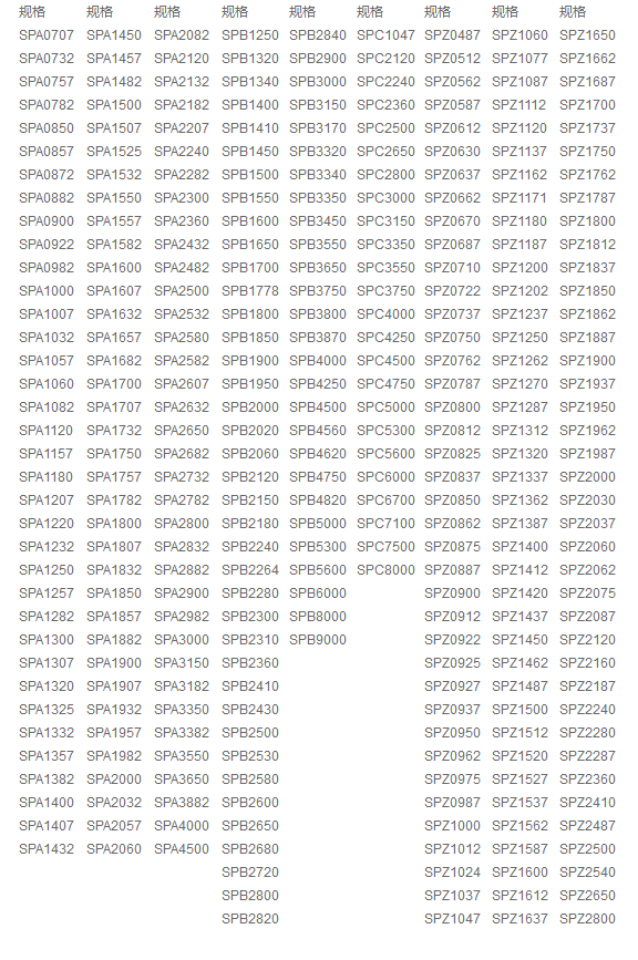 用途:特種V帶適用各種重載荷及溫度敏的應用